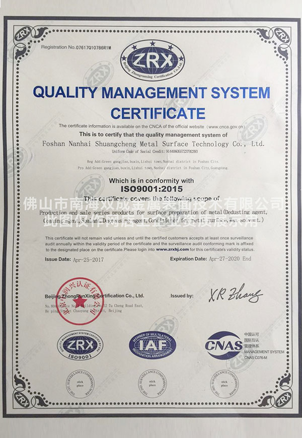 歡迎訪問無鉻鈍化劑_耐堿封閉劑廠家廣東雙成金屬表面科技有限公司官網(wǎng)!
